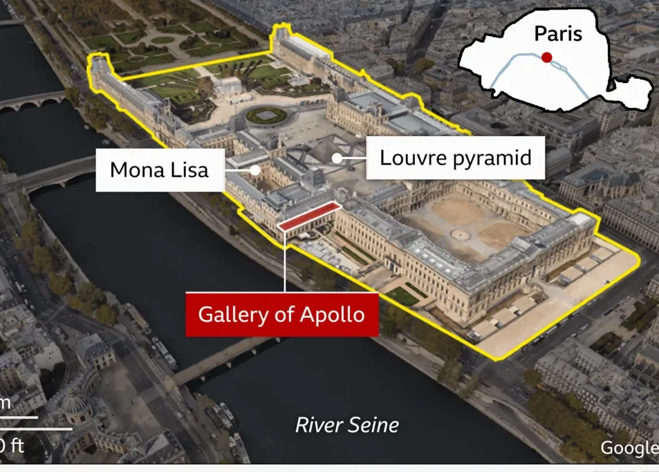 Using a vehicle-mounted mechanical lift, the gang accessed a first-floor balcony overlooking the River Seine and entered through a window. They then threatened guards, smashed open two display cases, and escaped on two scooters within four minutes, according to police.